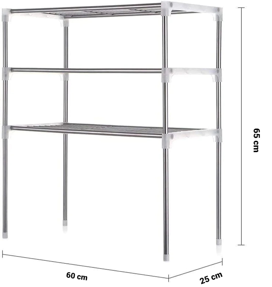 Stabil si rezistent: Facut din bare otel inoxidabil si accesorii de conectare din plastic, este un element de mare ajutor in casa dumneavoastra. Cele doua rafturi sunt realizate tot din bare puse la distanta mica una langa cealalta, permitand circulatia aerului si evita depunerea prafului.